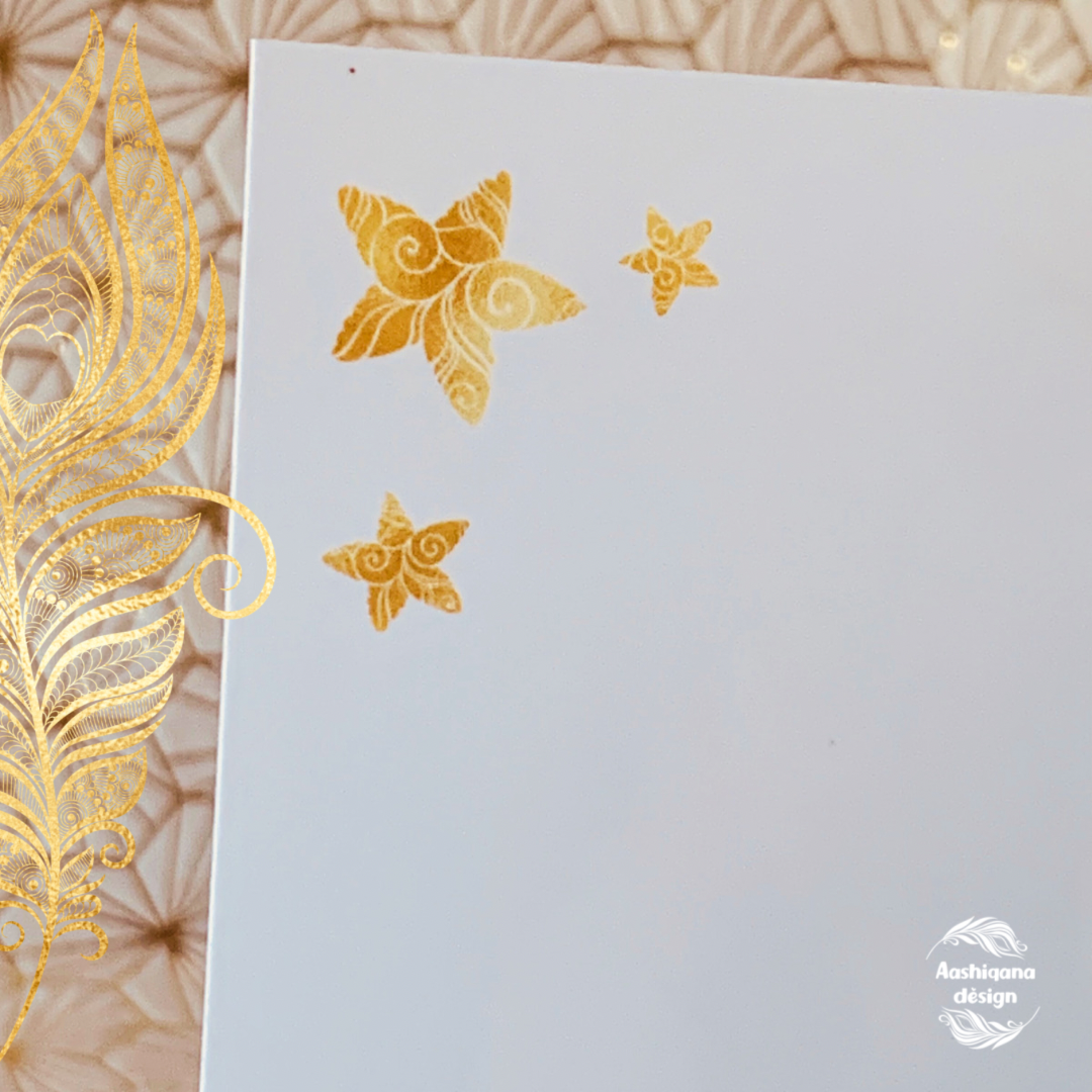 Op de buitenzijde van het wenskaart is te zien hoe Krishna een baby schenkt aan de ouders, die geduldig in de Ganges rivier staan en de baby in ontvangst nemen. Aan de binnenzijde van de kaarten zijn een aantal gouden sterren afgebeeld.